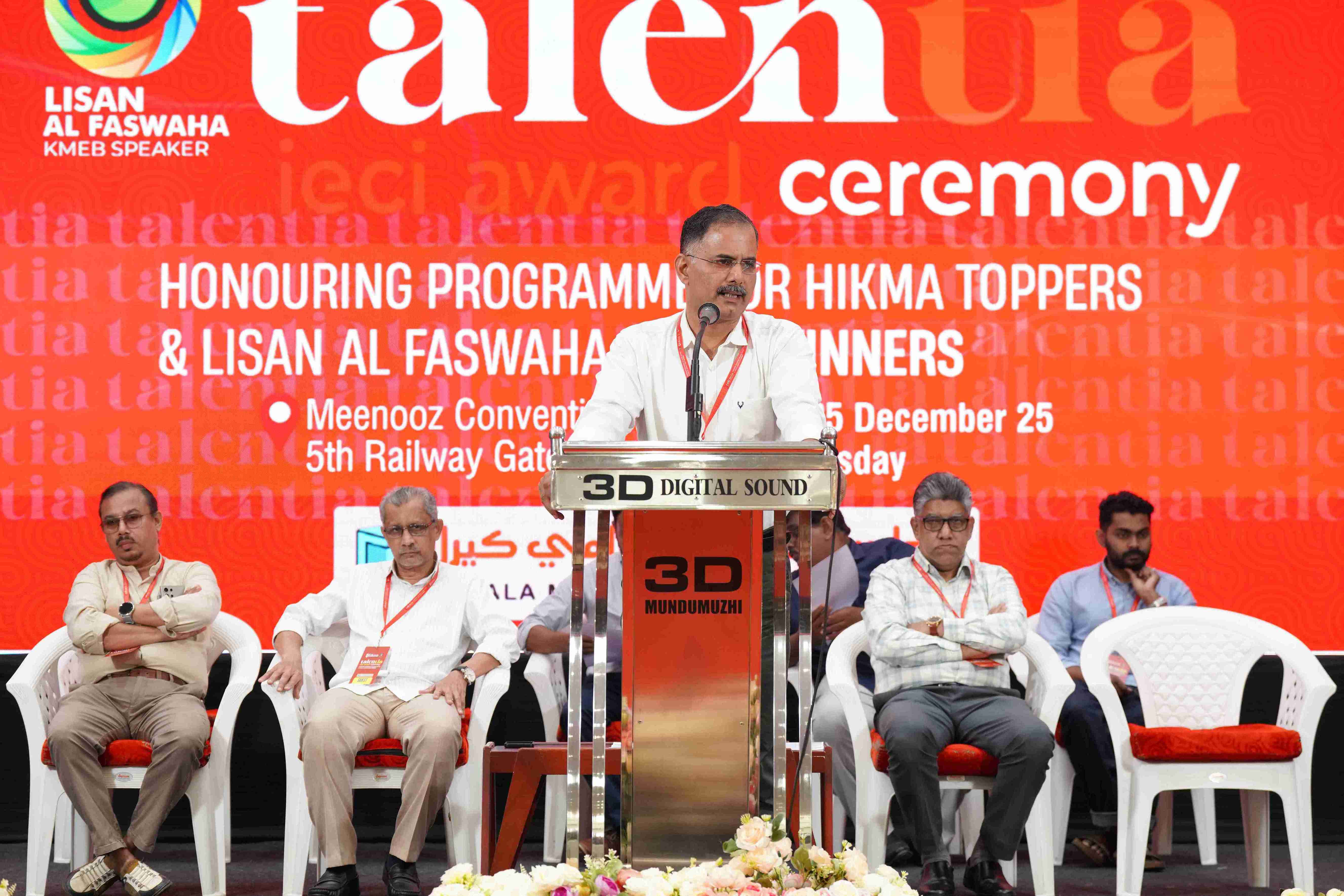 Talentia 2025" award ceremony, recognizing the Hikma toppers and Lisanul Faswaha KMEB Speaker State winners,
